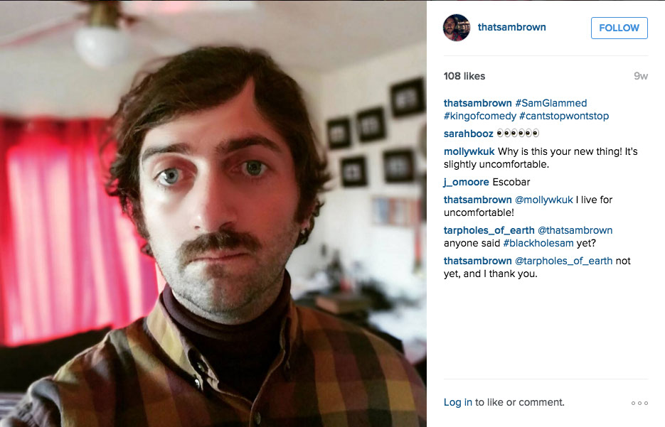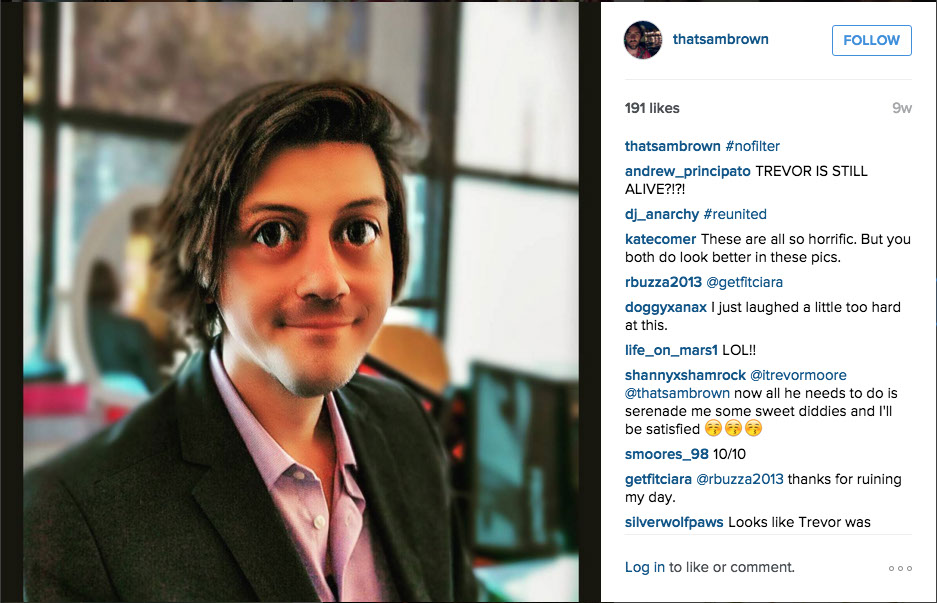 10 WEEKS A GO - Sam's alters a photo of @Waderandolph. In a response to @juliavickerman's comment, Sam refers to this new art form as "SamGlam".