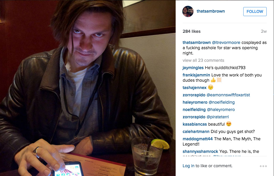 2 WEEKS AGO - Sam posts a normal unaltered photo of Trever Moore and it gets 284 likes.